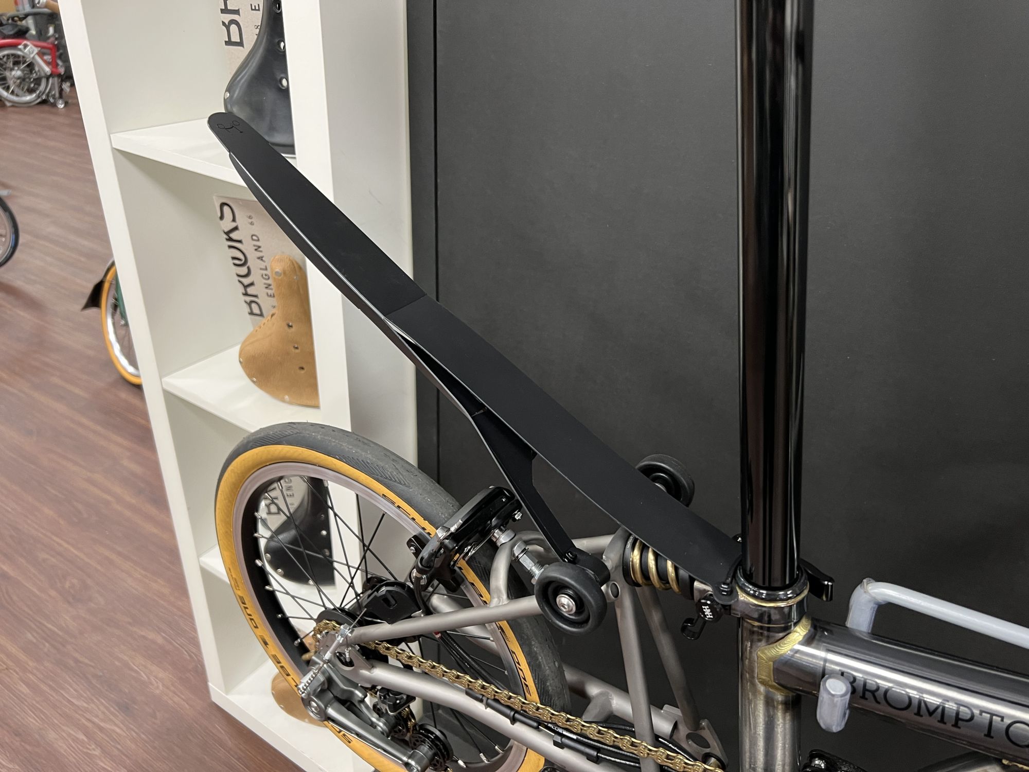 Ein superleichtes Brompton bedeutete bislang immer der Verzicht auf die Schutzbleche, die Flexi-Mudguards schützen Sie jetzt aber sowohl vor Schmutz, als auch vor unnötigem Gewicht.