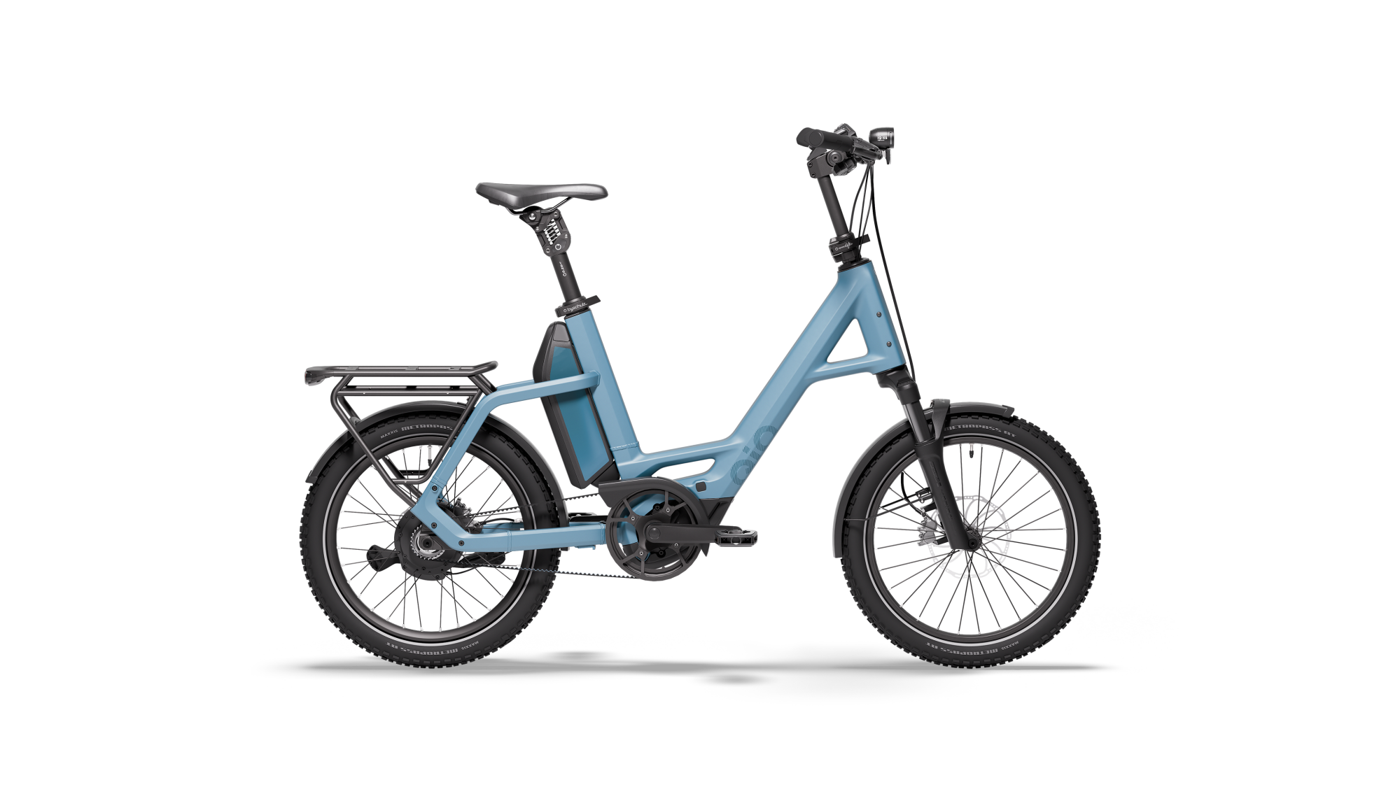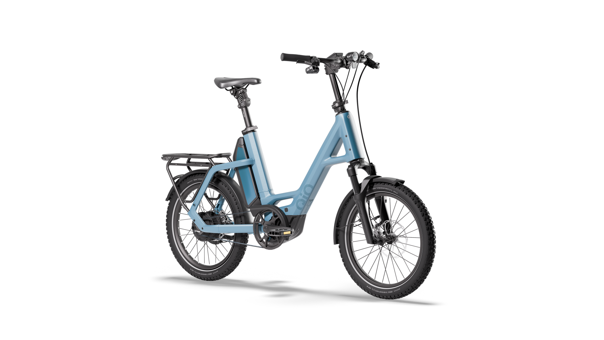 Das "Compact CXNINEx" von QiO ist das Topmodell der Serie und definiert moderne E-Bike-Mobilität neu – mit einem kompromisslosen Fokus auf Leistung, Komfort und Effizienz. Ausgestattet mit dem kraftvollen Bosch Performance Line CX Mittelmotor samt Smart System bietet das Bike eine dynamische und fein dosierbare Unterstützung bis zu 25 km/h, ideal für urbane und ländliche Strecken.Die gefederte Gabel mit 80 mm Federweg sowie die gefederte Sattelstütze sorgen für eine spürbare Reduktion von Vibrationen und Stößen – selbst auf rauem Untergrund. Ergänzt wird das Fahrwerk durch die hochwertige 3x3-Nabenschaltung, die neun präzise abgestimmte Gänge für maximale Effizienz und Fahrkomfort bereitstellt.Der Gates CDX Riemenantrieb steht für wartungsarme Langlebigkeit und ein besonders ruhiges Fahrverhalten. In Kombination mit dem leistungsstarken 800 Wh Akku ergibt sich eine beeindruckende Reichweite, die auch längere Touren souverän abdeckt.Für maximale Sicherheit und Kontrolle sorgen hydraulische 4-Kolben-Scheibenbremsen, die auch bei Nässe und hohen Geschwindigkeiten zuverlässig verzögern. Die Beleuchtung übernimmt der hochwertige Busch+Müller "IQ-XS high beam" mED-Scheinwerfer, der mit 100 Lux Abblendlicht und 150 Lux Fernlichtfunktion eine exzellente Ausleuchtung der Fahrbahn bietet – ideal für Fahrten bei Dunkelheit und schlechten Sichtverhältnissen.
