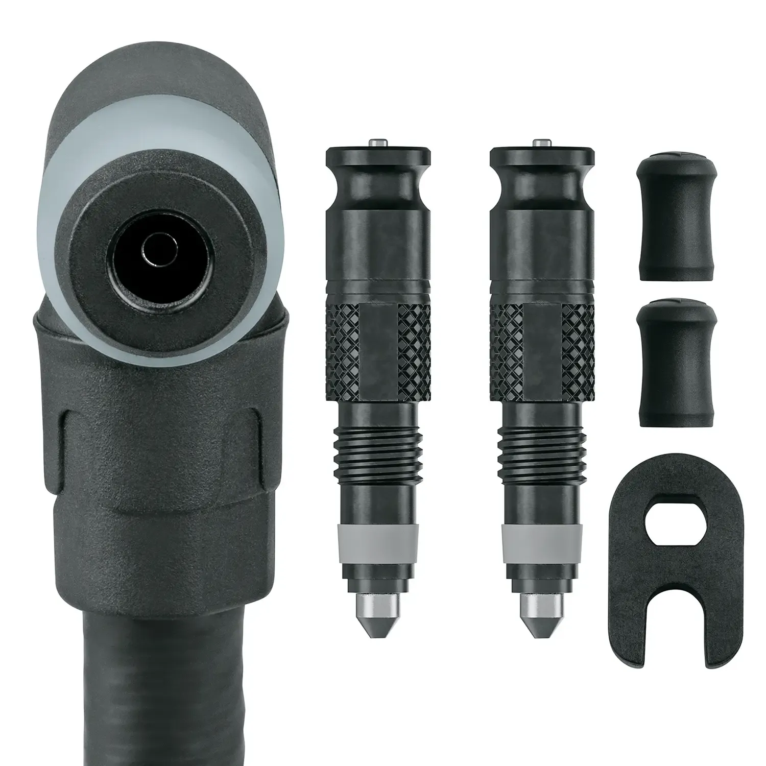 Ein SKS CLIK TEC-Pumpenkopf zum Umrüsten einer bisherigen Standpumpe ist im Umrüstset enthalten. Inklusive Staubkappen.