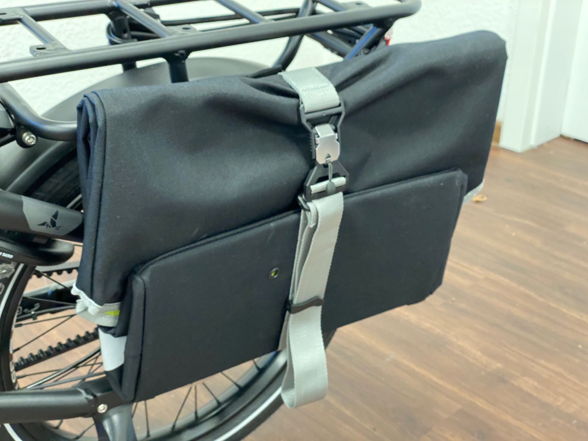 Stauraum für den Wocheneinkauf oder flach zusammengefaltet am Rad, die Taschen sind super. Handling und Verschluss finde ich auch super.