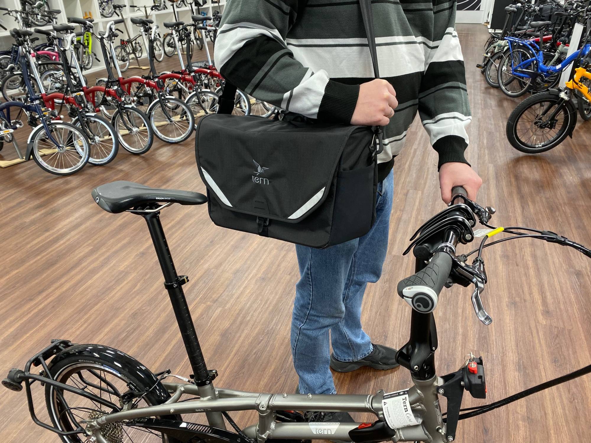 - Für die Montage am Fahrradrahmen ist eine Tern Luggage Truss™- oder Luggage Truss™ CMT-Halterung erforderlich