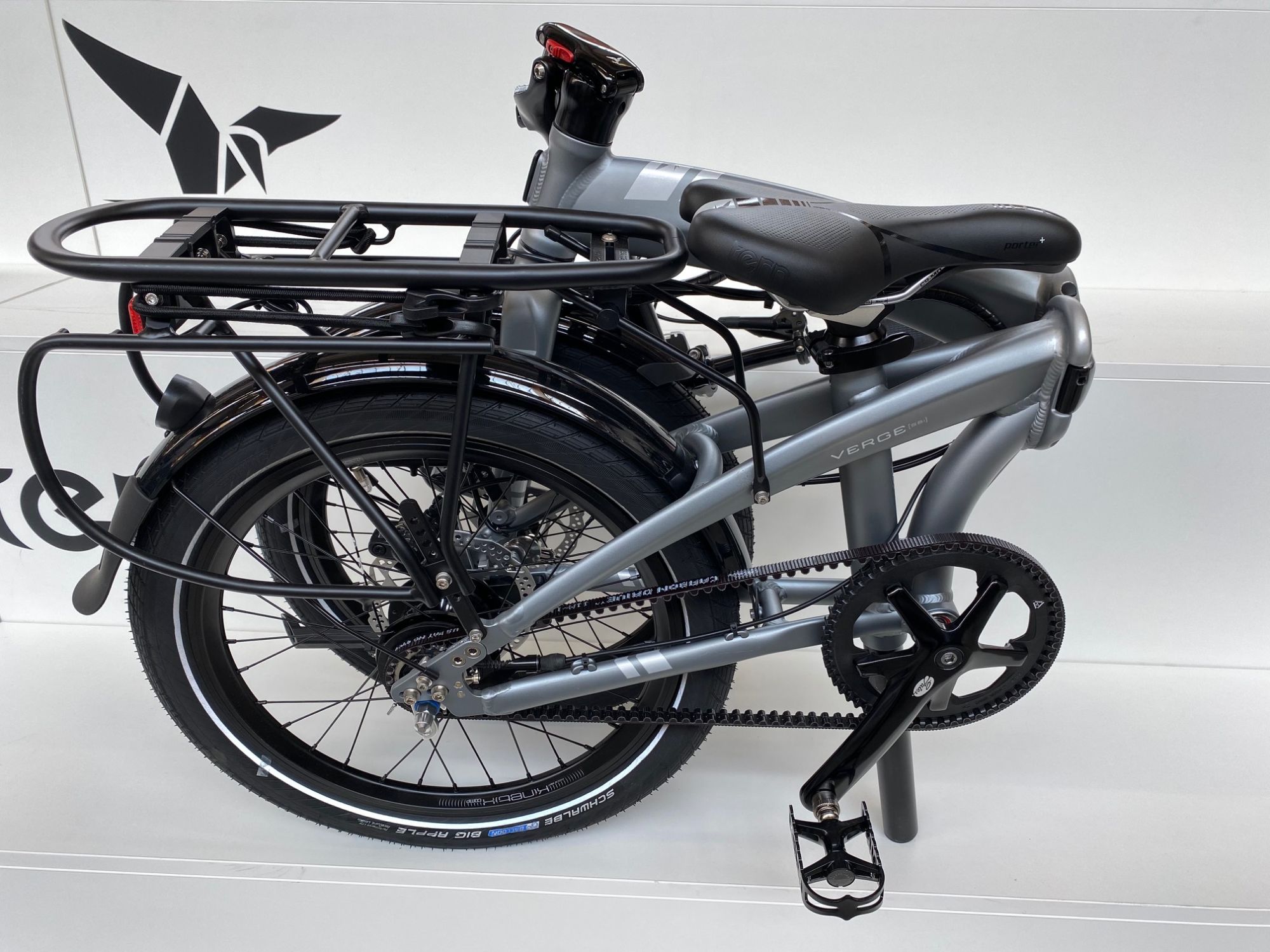 Das Verge S8i ist das vielseitigste und wartungsfreundlichste Faltrad der Welt, Punkt. Dafür sprechen neben der Vollausstattung – Nabendynamo-Beleuchtung, vollwertige Schutzbleche, stabiler Gepäckträger – der wartungsarme und flüsterleise Gates-Riemenantrieb, die edle Shimano Alfine 8-Gang-Nabenschaltung sowie hydraulische Scheibenbremsen. Und mit seinem extralangen Radstand plus breiten Big Apple-Reifen von Schwalbe rollt es laufruhig und komfortabel über Straßen und Radwege aller Art. Was will man mehr?