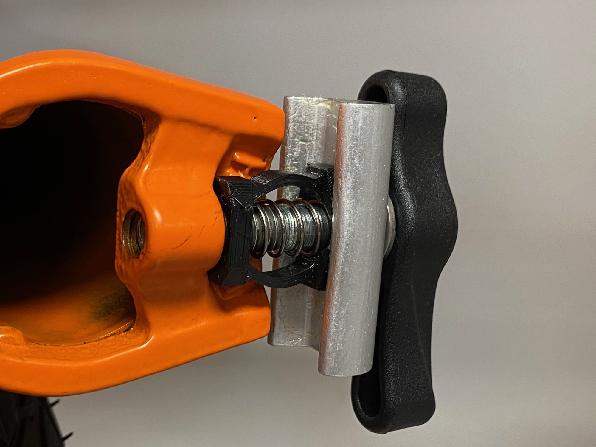 Sie beschleunigt den Auf und Abbau des Bromptons ungemein, da die Klemmverschlüsse so endlich nicht mehr mit drehen.