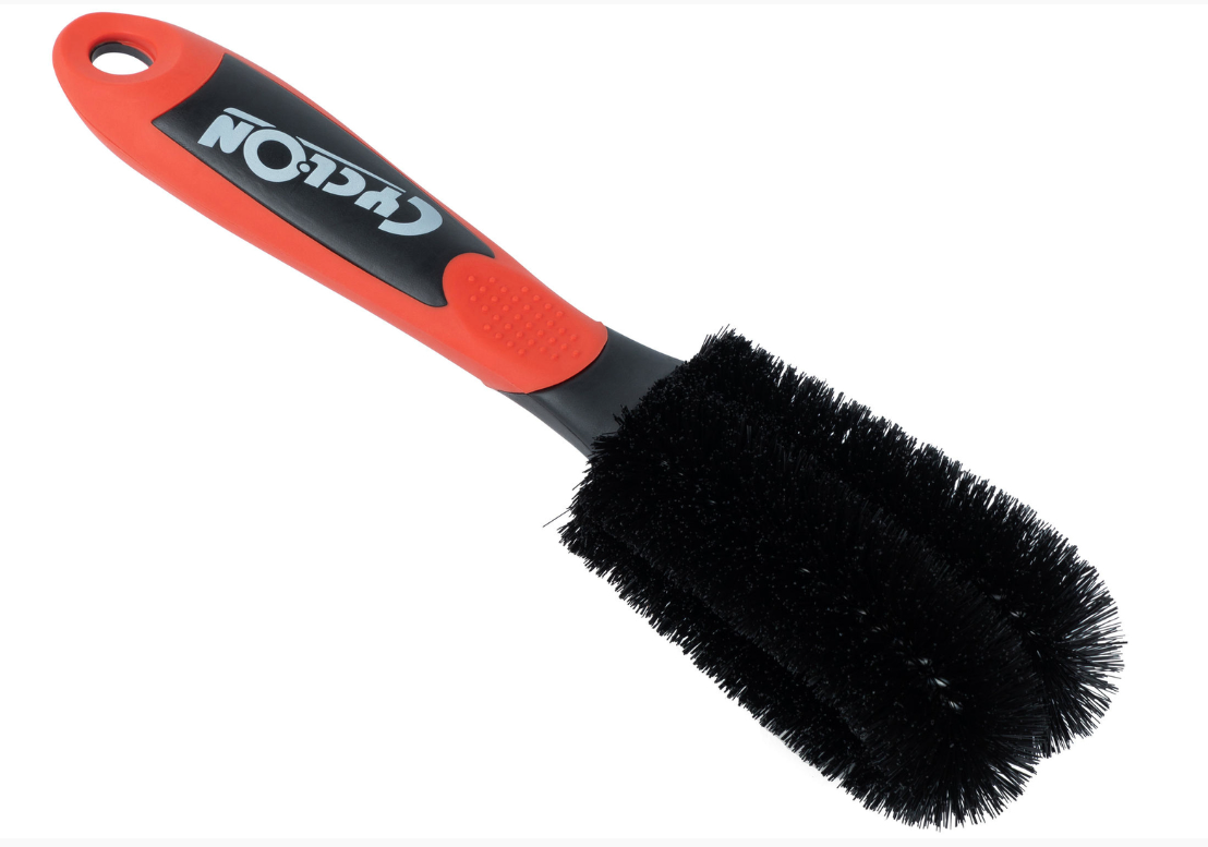 Reinigungsbürste mit langlebigen Nylonborsten und gummiertem Griff.